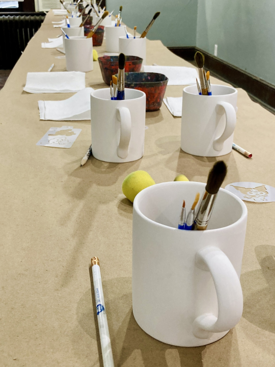 Each participant will receive a ceramic mug to glaze with their own unique designs. Our instructors will guide you through the glazing process, and all materials are included. Finished mugs will be kiln-fired and ready for pick up the following week of the party. No prior experience is needed. Just bring your imagination and get ready to create a one-of-a-kind keepsake!